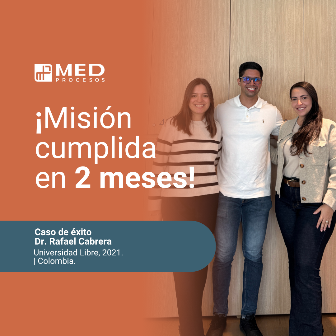 El Dr. Rafael Cabrera llegó a Med Procesos con un sueño claro: hacer su especialidad médica en Argentina. Desde el primer momento mostró compromiso y confianza, y junto a nuestro acompañamiento logró avanzar sin contratiempos.